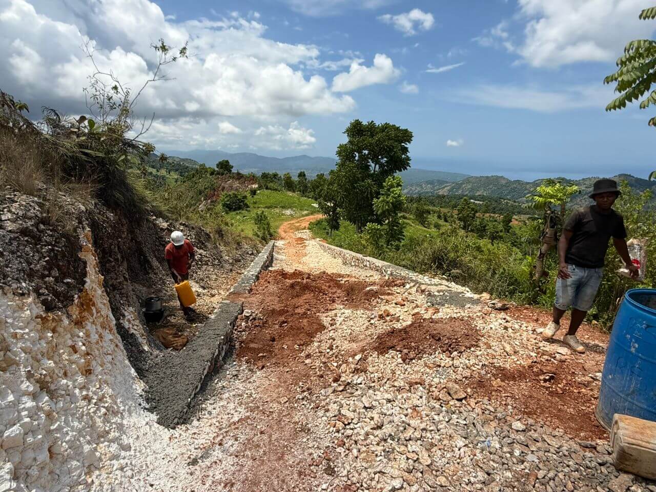Un important chantier de réhabilitation est en cours sur le tronçon dit « Ti Victo », particulièrement dégradé, d’une route très fréquentée reliant les deux grands étages agronomiques du versant nord du plateau des Rochelois (1ʳᵉ section Fond des Lianes, commune de Petite-Rivière-des-Nippes). Cette piste réhabilitée facilitera le transport des productions agricoles vers les marchés de Mussotte, Fond des Nègres et Miragoâne, ainsi que les déplacements des habitants vers les villes de la plaine pour accéder à des services essentiels : hôpitaux, écoles, commerces et établissements d’enseignement secondaire ou supérieur.